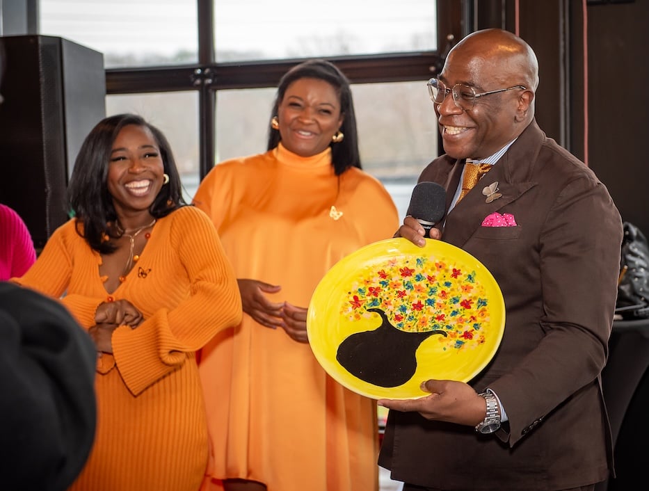 Past recipients include early childhood educator and Inspired Communities, Inc. Founder Kim Harris and the Community Foundation for Greater New Haven’s Erica G. Bradley. This year, Clemons marked the award with a hand-painted plate, on which bright, tiny flowers explode from the open mouth of a vase. The background is a bright, radiant yellow, as if the plate has soaked up a little piece of the sun itself.