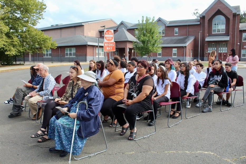 Walker’s family, school community, city officials and members of the New Haven Peace Commission honored that memory Friday morning, in a peace tree planting and bench dedication beside BRAMS’ Kimberly Avenue parking lot. Held to commemorate the 43rd annual International Day of Peace, the dedication became a passionate call to practice peace from the ground up, from one’s own embattled heart to devastation halfway around the world.