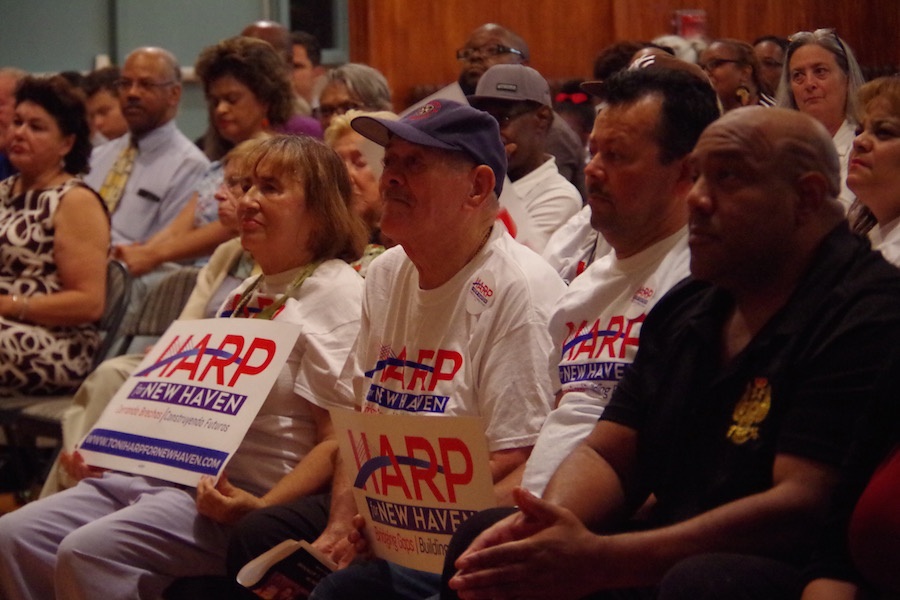 Channeling his inner Fred Astaire, Paca did a valiant tap dance around the question, working in a smooth bombershay on new job growth and ways to “cut waste in city government.” Foregoing her tap shoes, Harp launched into a monologue of bullet points: New Haven would get an additional 50 million if Yale-New Haven Hospital was taxed. She would support taxing them, she said, if they could get the dollars back for the city's Medicaid program.