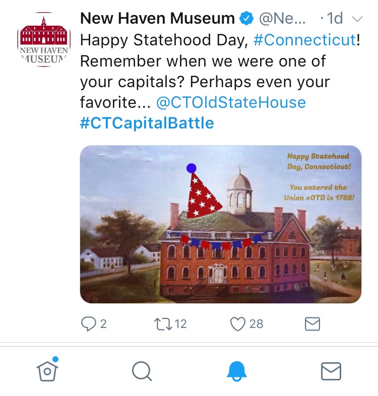 But in that stream of well-wishers, people seemed to forget that for 174 years New Haven was a co-capital of Connecticut. Except this author and Nicole Sousa, social media specialist at the Connecticut's Old State House (OSH) in Hartford. We decided we wanted to have a Twitter conversation about the history of the capitol buildings and the capital cities. Because how else will people find out what that history is?