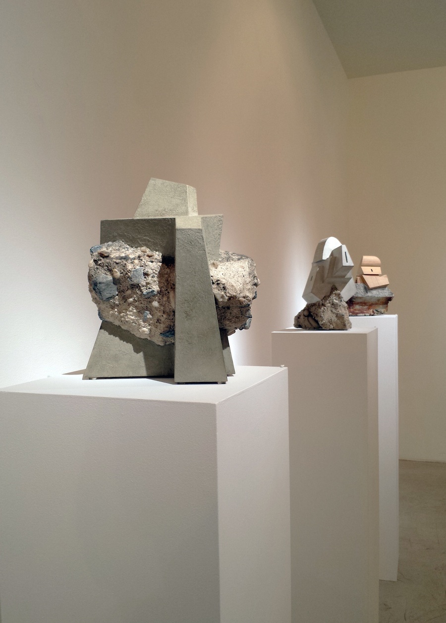 Kurt Steger’s series of “Urban Structure” sculptures are three-dimensional koans on the difficulty of de-conflicting. Steger builds each “Urban Structure” from the same foundation—haphazardly hewn chunks of rock-studded concrete—but varies the outriding form that clings to its surface. The structures of “Urban Structure” flit across the two categories of combatant and noncombatant: evenly-planed geometries like dragon’s-teeth anti-tank barricades; sprawling trapezoidal agglomerations pierced with rectangular windows, thin-walled like a multi-story family dwelling.