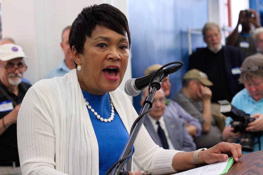 City Librarian Martha Brogan also addressed the group, greeting them as she approached the podium to cries of “People over profits! People over profits!” She heard them loud and clear, she assured protesters—and she respected their right to gather and voice their opinions.