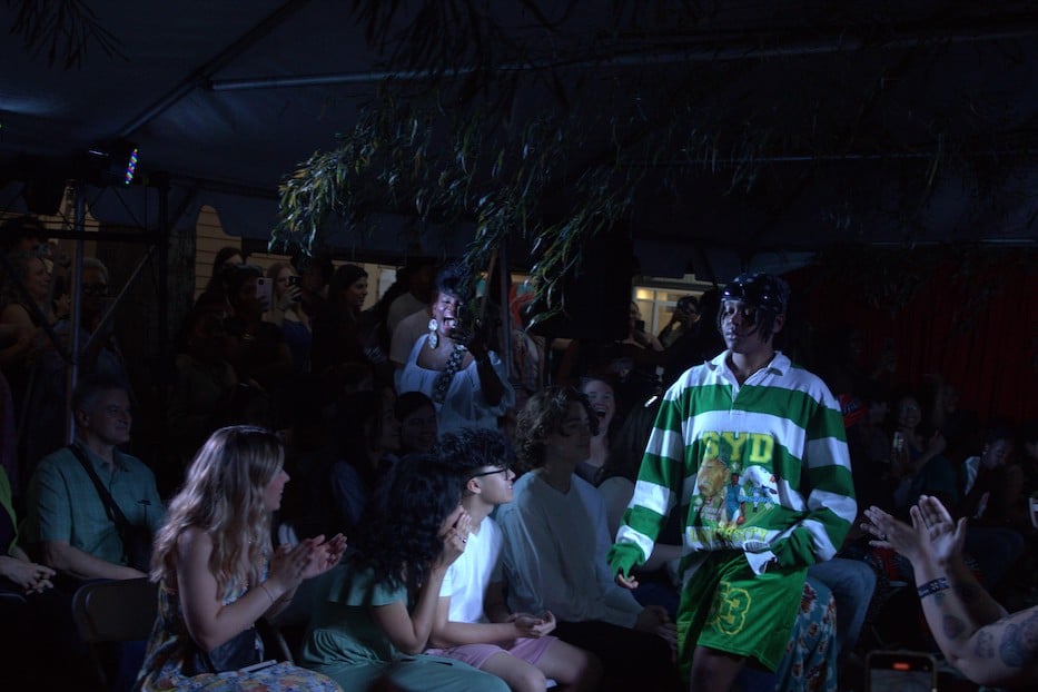 Montgomery emerged in pants made from the paisley pattern he had been trimming pre-show. Visitors chatted animatedly, congratulating designers and cracking jokes with models. The red carpet rolled up, the lights turned off, and the bedazzled stars became New Haveners once more.
