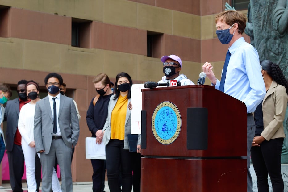 Tuesday, several team members spoke about the plan as a new way to redistribute economic power through arts and culture. Curtis, who grew up in New Haven and now works as a field organizer for the ACLU, said that he has until now been excluded from discussions around city funding and resource allocation, despite decades of lived experience. He said that having access to the team—and to the city—means that he can pave a path for more people with similar backstories. During the press conference, he held a handmade sign that read “Together We Thrive” in big red letters above his head.