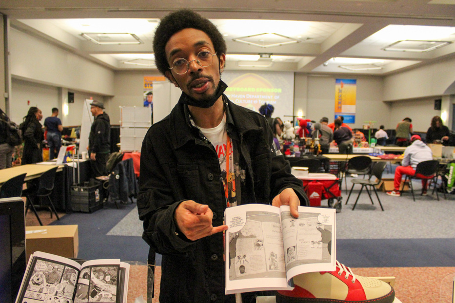 The contest capped off a busy Saturday at Southern Connecticut State University’s Adanti Center ballroom, where around 25 vendors and over 110 participants from across the state came to buy and sell comics and other wares from Black creators, learn about illustration and animation in a series of workshops, play video games, and show off their costumes.