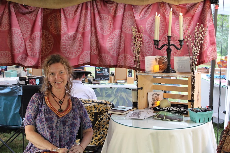 Nearby, designer Melanie Rivera promoted her brand, hte Norwich-based creation MelRose Denim. Starting with a love for denim, Rivera creates jackets and vests that are new, repurposed, reused, and reclaimed. What she calls her “little masterpieces”—upcycled and recycled vintage materials and fabrics—always seem to find their way to those who need them.
