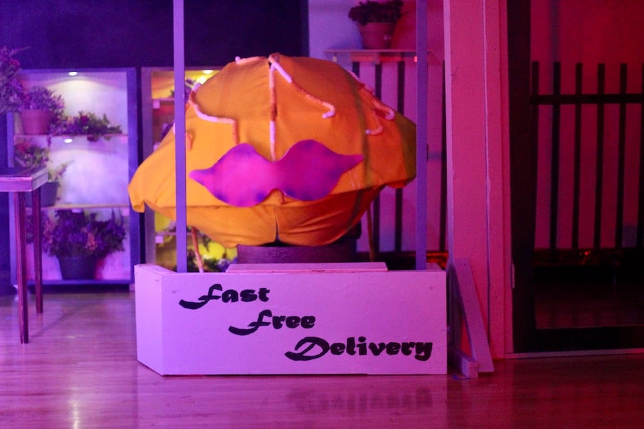 There are just a few catches, made possible with the magic of otherworldly and gem-colored stage lighting, fog machines, puppetry, and a young theater company that has proved unstoppable. Audrey’s biker-dentist-boyfriend Orin Scrivello (a side-splittingly funny Jose Saez) is an abusive sadist with a habit for nitrous oxide. Mushnik is one failed sale away from firing everyone and probably burning down the store. And Audrey II feeds on human blood. What could possibly go wrong?