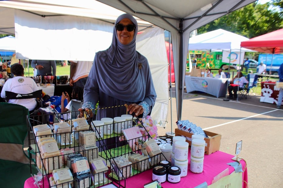 Nearby, vendors Emily Wong and Jamilah Rasheed folded candles, body butter, and “Shea by J” natural soaps into the mix. Born and raised in West Haven, Wong grew up wanting to see “nothing but happiness” from the people around her, she said. This month, she launched her business, Karmic Cycle Candles, as part of that goal. When she saw the chance to sell her candles at the festival, she jumped at the opportunity.