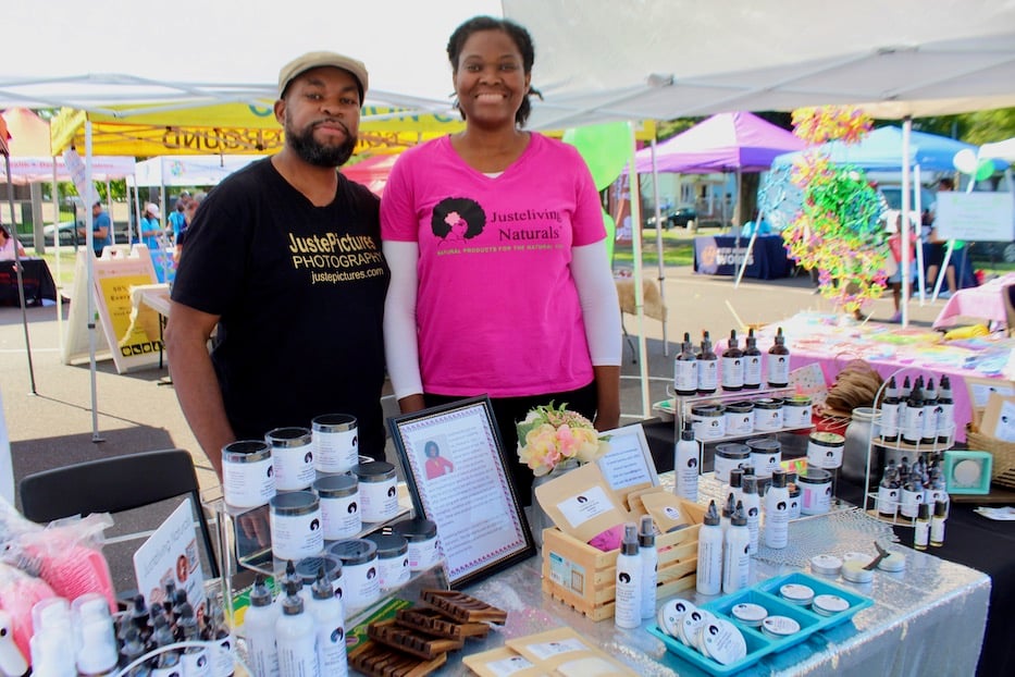 As steel pan yielded to bomba, Shanique Reid and Riketta Jones echoed the praise for the festival that flowed through the park. Raised in the neighborhood, Reid said she was excited to return to the park for something so focused on the community. Both lauded the number of Black-owned businesses focused on self-care, particularly brands like Candice Dorman’s Beaver Hills-based Ekow Body.