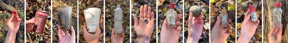 Over time, it made her start thinking about how to make her own practice more environmentally sustainable. Zabeida typically rides in the early mornings, when the air is still cool. Months ago, she began picking up detritus that she saw along the trails, where people discard everything from surgical masks to soda cans. Those, too, became a kind of series, chronicling a jarring disregard for nature.