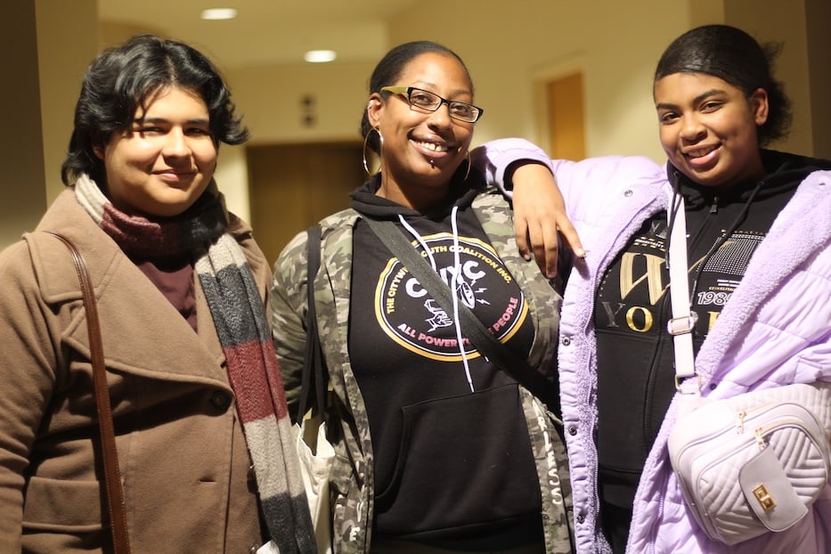 Harmony Solomon Cruz-Bustamante with Ta'LannaMonique “T’Mo” Lawson-Dickerson, youth services coordinator at the New Haven Pride Center, and their daughter Khloé Lawson. "What is important is the analysis of the training, the quality of the training, and who is actually providing the training. Having a straight, cisgendered person do a training about LGBTQ folks might not be the best fit," Lawson-Dickerson said during their testimony.