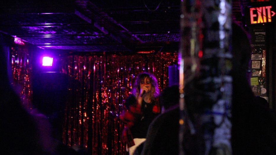 If Wednesday’s set was any indication, it turned out that Cafe Nine is a perfect venue for blending art and activism. First to take the stage was the artist Antares, whose cat-ear headphones became a staple that accompanied electronic, vocal-tuned music and a spirited set. Using monster high dolls and some tried-and-true moshing, they rang in the evening with high energy, making sure that excitement buzzed and thrummed through the intimate Ninth Square venue.