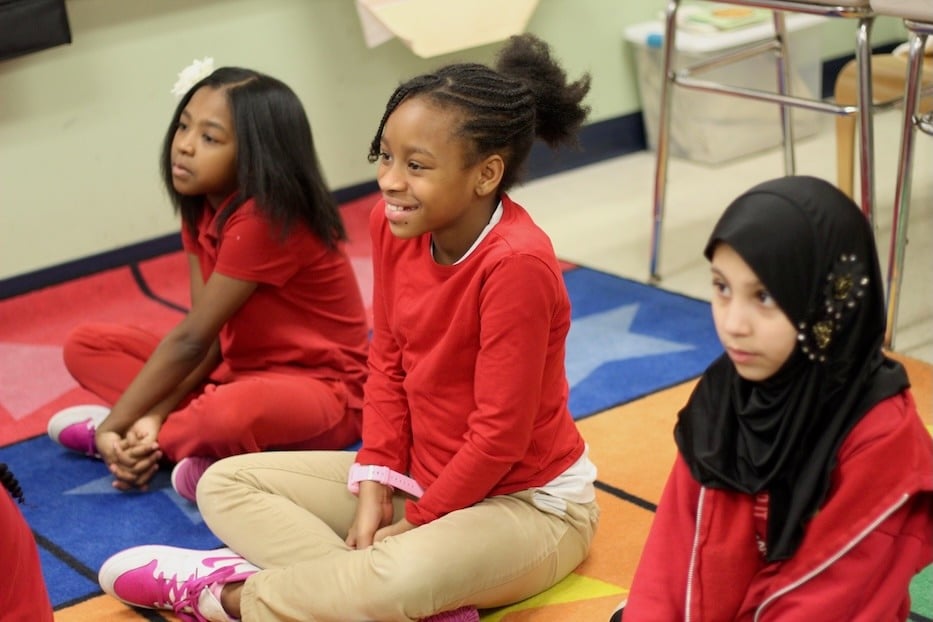 From where she sat cross-legged on the floor, Arwa Moutamatai turned from the illustration to her classmate, then back to the book. "No wonder he looks sad," she said.