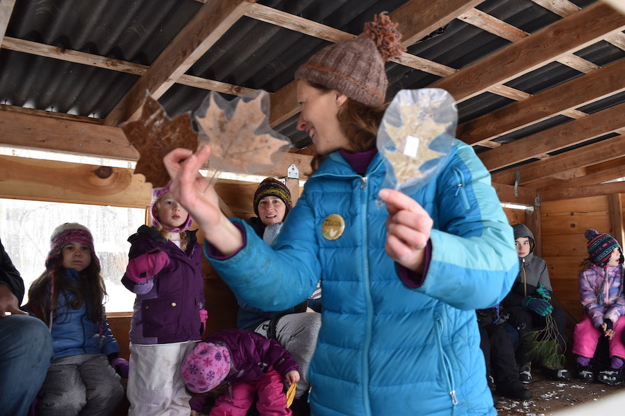 A bit further into that window, just a couple weeks after Senzer hammered in her first taps of the season, Common Ground Environmental Educators Alexa Fiszer and Tricia Mangold Heiser were teaching a group of three dozen children and grownups about the same process.