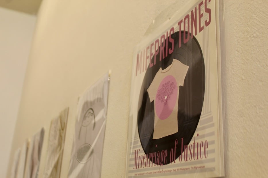 The fictitious album, from the equally fictitious Mifepris Tones, is part of Sound & Vision II: For The Record, running in the Gallery Upstairs at The Institute Library through May 6. Curated by artist Martha Lewis with over two dozen participating artists, the group show uses sharp, funny, and almost entirely made up album art to speak truth to power.