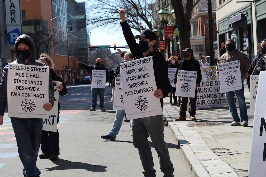 The story of the picket begins 12 months ago, when 21 stagehands at the venue voted unanimously to unionize. That vote, supervised by the National Labor Relations Board, took place on March 11, 2020. Less than four days later, College Street Music Hall closed per statewide executive order. Contract negotiations have remained in limbo for a year.