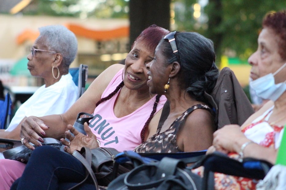 Top: Friday marked the first cool night in weeks, and the audience was grateful for it. Bottom: Mary Lopes and Mary Freeman. Kimberly Wipfler Photos.