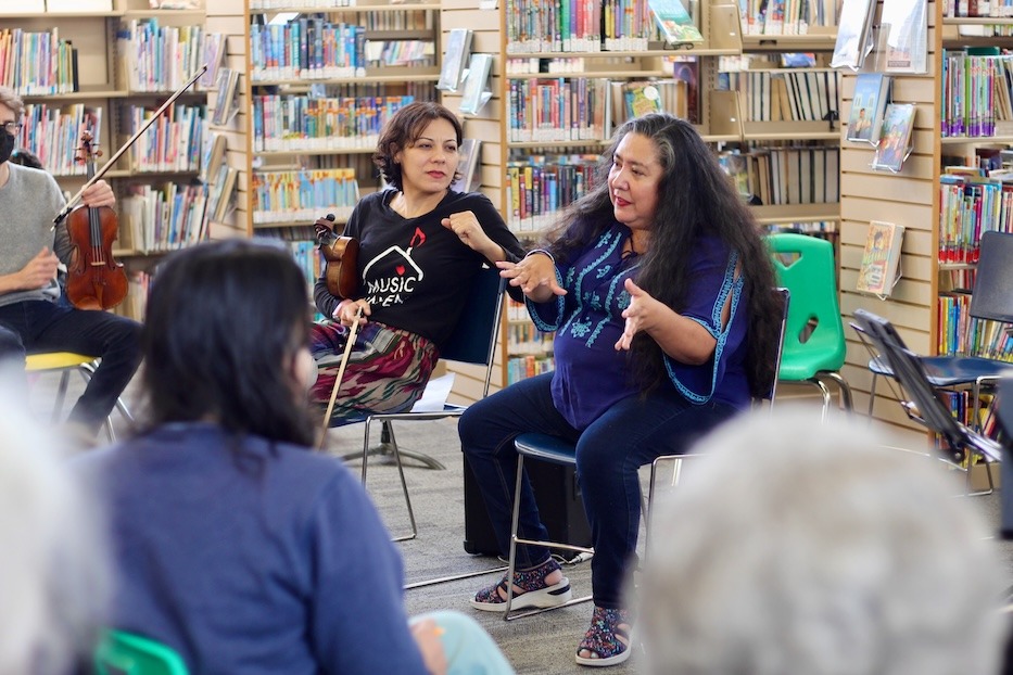 Saturday, that sense of welcome permeated the concert, from its first breath to a final round of applause. As string quartet members started with selections from Puerto Rican composer Luis Gustavo Prado, strings filled the children’s section of the library, winding their way around snugly packed shelves and down aisles of books. Towards the back of the room, they found their way around a Hispanic Heritage Month display, complete with titles like Alma Semilla from New Haven author Nohra Bernal.