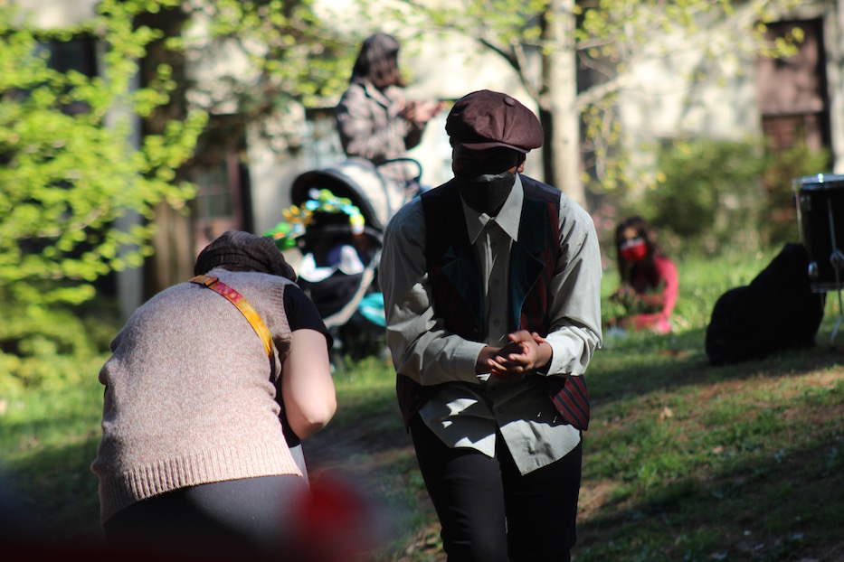 The performance was months in the making. To get to a full show, teen troupe members pushed through weeks of rehearsal both on Zoom and in person. When rehearsals began in February, there was still a thick cake of snow and ice on the ground, which meant that the troupe was entirely online. Weeks later, the Edgerton Park Conservancy gave Curns permission to rehearse in the park’s carriage house—as long as there were no more than seven people inside at one time.