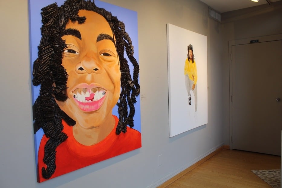 It's the moment, frozen in time, that flings the doors to a viewer's heart wide open. In the center of the canvas, a young boy smiles, his tongue pressed up against his gums where a tooth used to be. Hair spills over his shoulders and t-shirt; it extends out from the canvas, thick and gleaming. Even his eyes twinkle, caught in the process of shedding one's baby self.